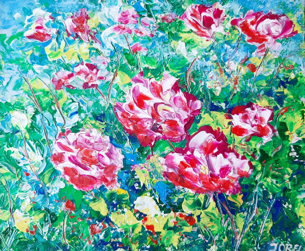 spachteltechnik 60x60 Rhododendronblüten (2020) von Jorei Online seit 14.04.2020 Anfrage zum Objekt #Malerei #Impressionismus #Sonstige Kunstthemen WE Jorei